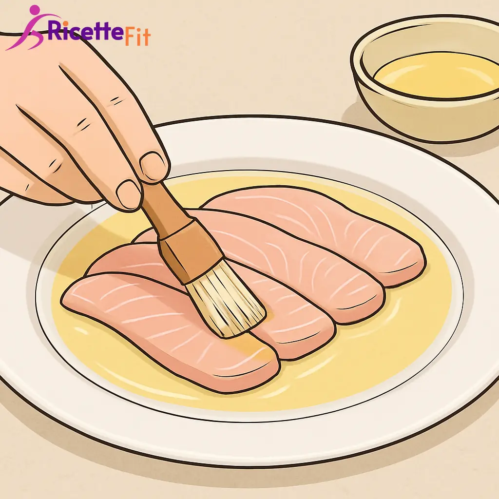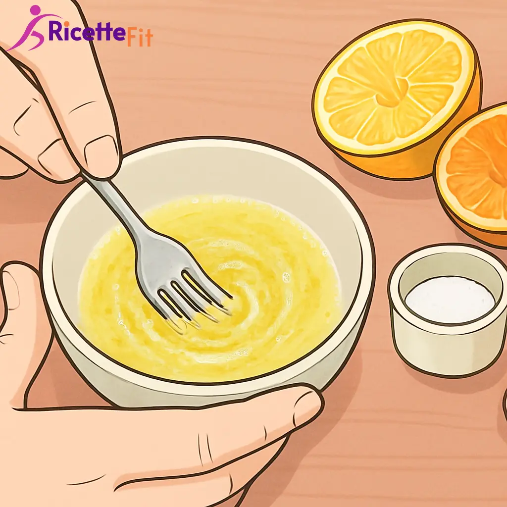 In una ciotolina mescola succo di limone, succo di arancia, olio extravergine di oliva, scorza di limone, sale e pepe bianco. Sbatti con una forchetta fino a ottenere una marinata lucida e leggermente cremosa.
