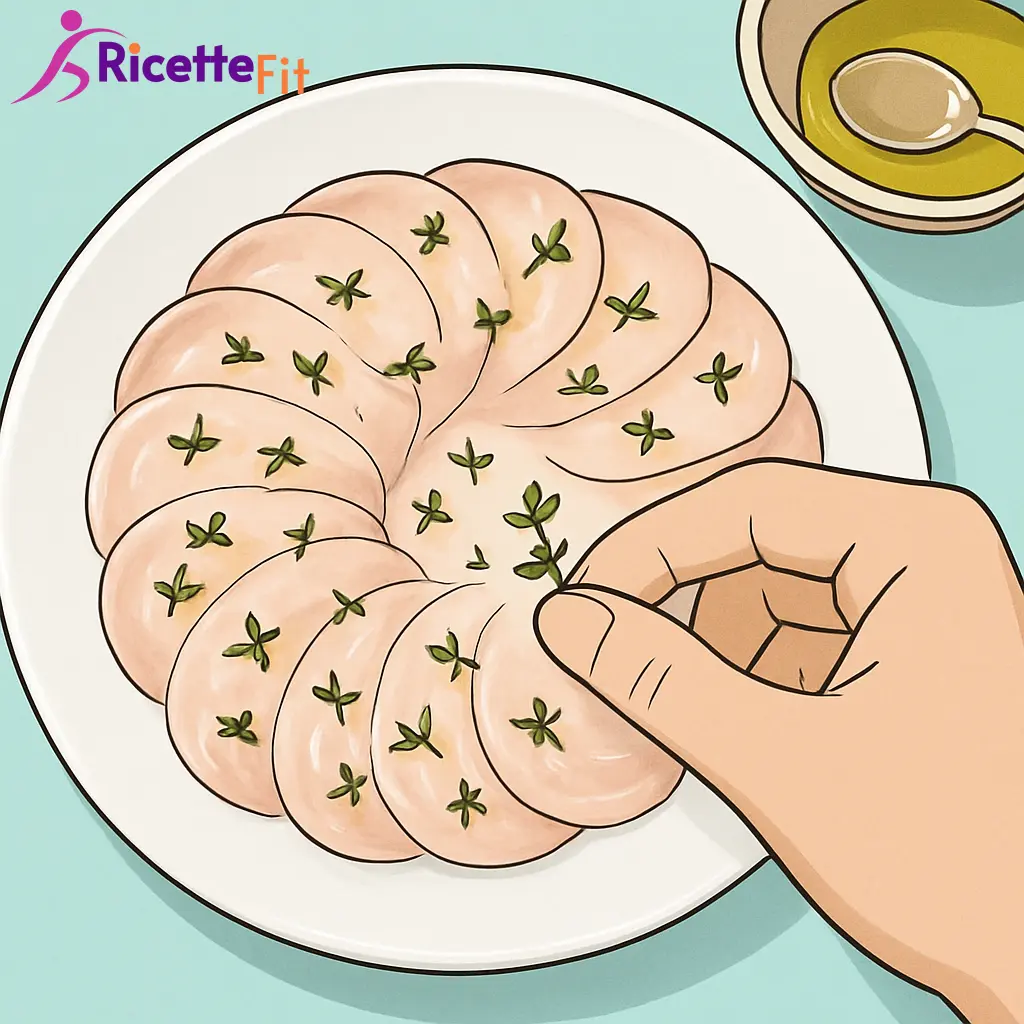 Un carpaccio fresco e proteico, profumato agli agrumi e timo, perfetto per un antipasto fit o un secondo leggero d’estate.