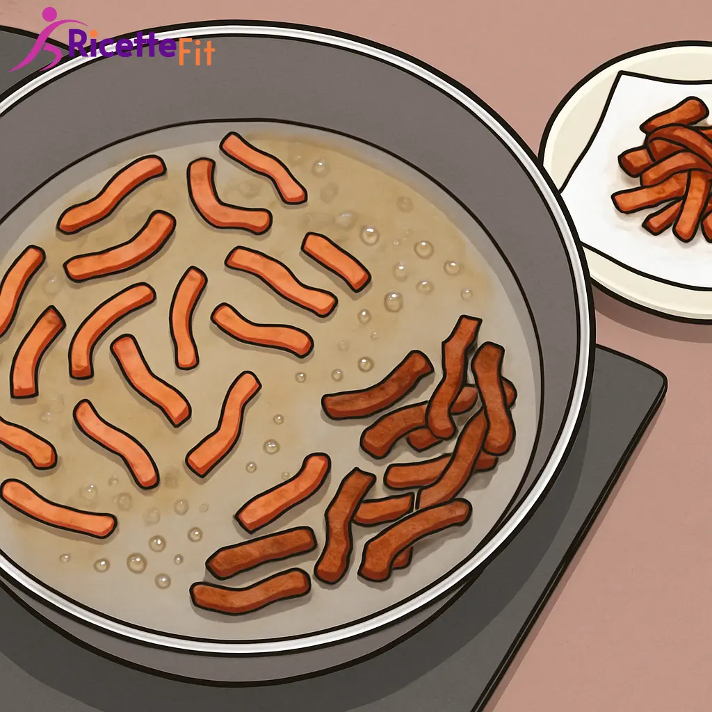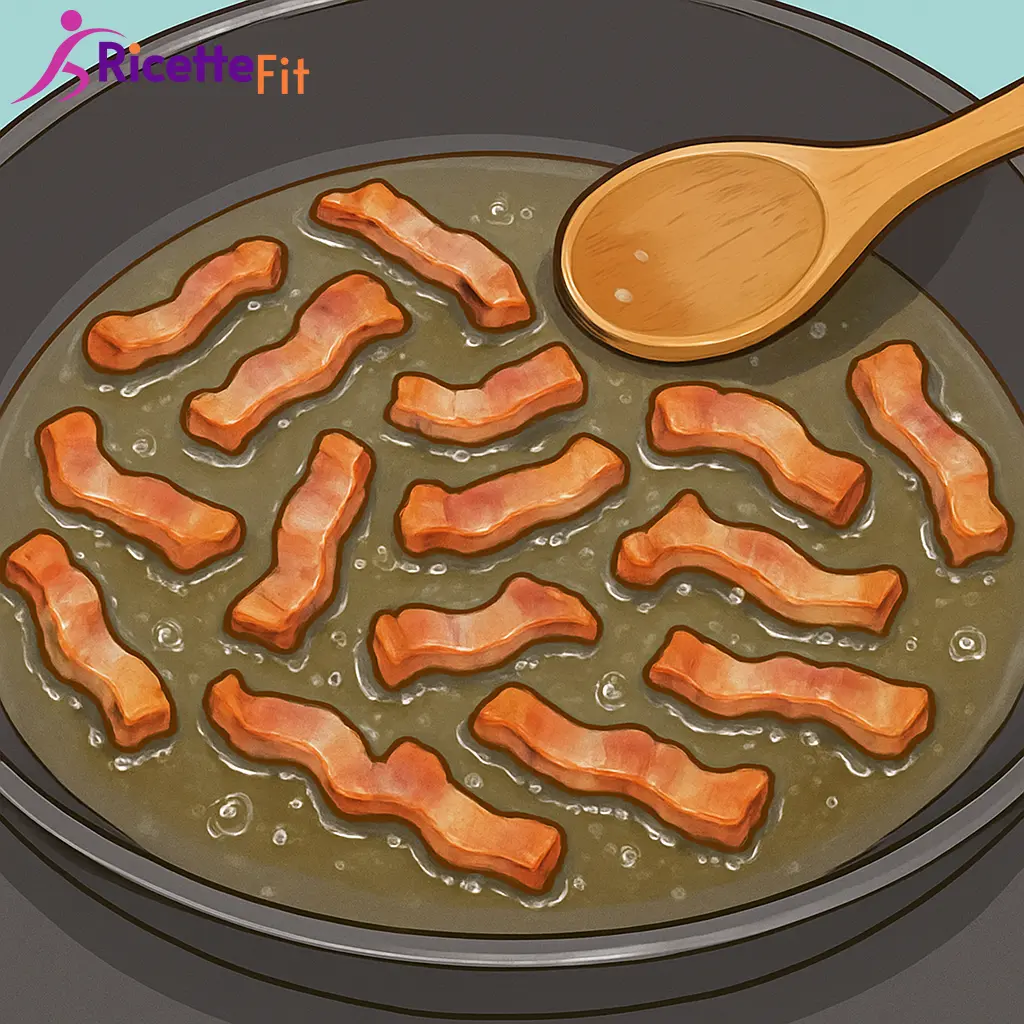 Scalda una padella ampia a fuoco medio-basso con l'olio extravergine. Aggiungi il guanciale e lascialo sudare dolcemente per 6-8 minuti, mescolando spesso, finché il grasso diventa trasparente e le listarelle sono dorate. Non bruciarlo: deve risultare croccante e saporito, non amaro.Sfuma e tieni da parte la parte croccante